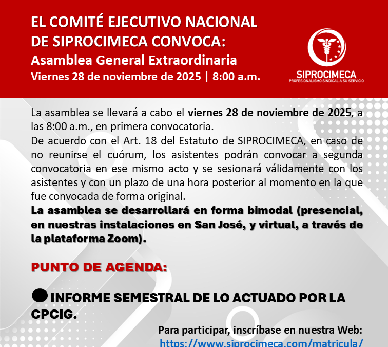 La asamblea se llevará a cabo el viernes 28 de noviembre de 2025, a las 8:00 a.m., en primera convocatoria.