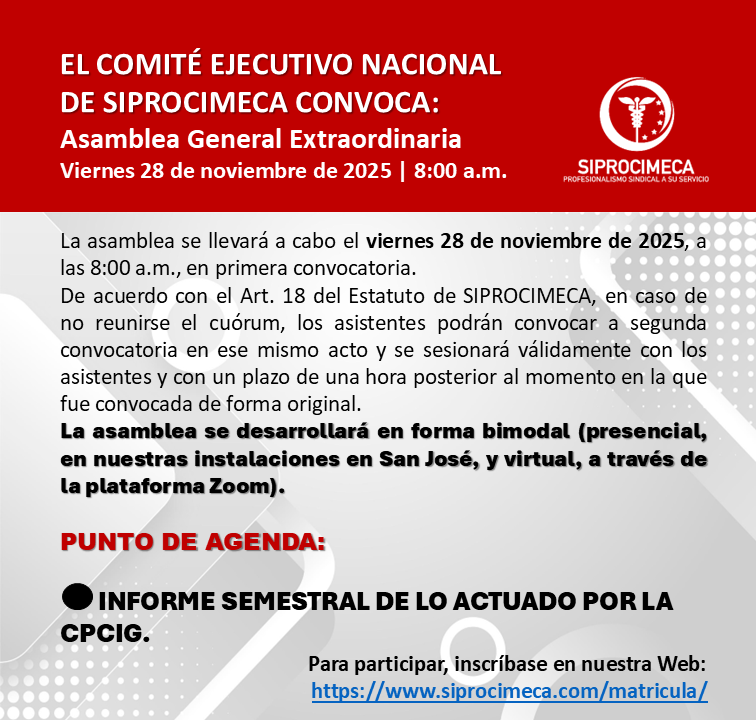 EL COMITÉ EJECUTIVO NACIONAL DE SIPROCIMECA CONVOCAAsamblea General ExtraordinariaViernes 29 de agosto de 2025 | 8:00 a.m. La asamblea se llevará a cabo el viernes 29 […]