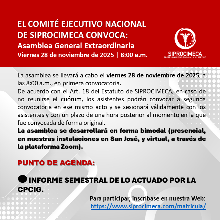 EL COMITÉ EJECUTIVO NACIONAL DE SIPROCIMECA CONVOCAAsamblea General ExtraordinariaViernes 29 de agosto de 2025 | 8:00 a.m. La asamblea se llevará a cabo el viernes 29 […]
